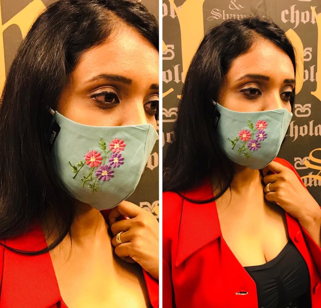 Embroidered mask.